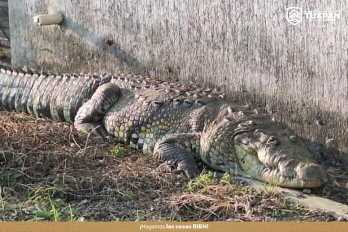 Gracias a un reporte ciudadano, elementos de Protección Civil y Bomberos de Tuxpan implementaron un operativo de rescate tras el avistamiento de un cocodrilo en la vía pública, específicamente sobre el libramiento Adolfo López Mateos.