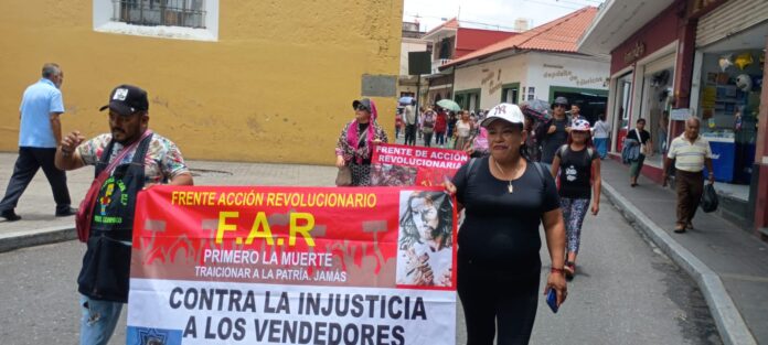 Con consignas y pancartas en mano, integrantes del Frente de Acción Revolucionaria (FAR) caminaron por las principales calles de Orizaba este jueves, exigiendo un alto al hostigamiento policiaco que —según denuncian— sufren los vendedores ambulantes.