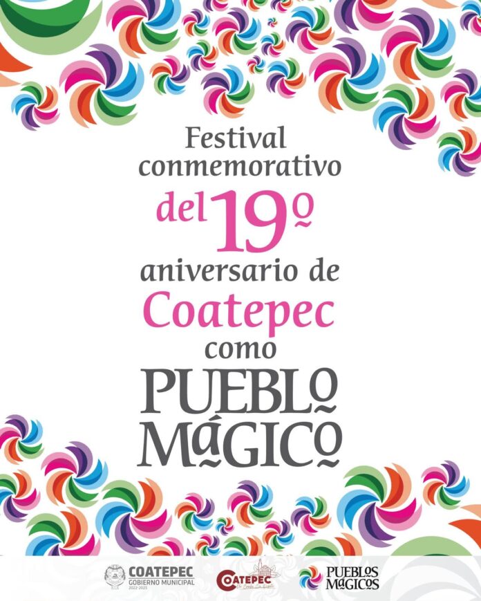 El Ayuntamiento de Coatepec invita cordialmente a formar parte del Festival Conmemorativo por el décimo noveno aniversario de su designación como Pueblo Mágico, que se llevará a cabo este sábado 16 y domingo 17 de agosto, a partir de las 17:00 horas, en el Parque Miguel Hidalgo y el andador urbano “Matías Rebolledo”.