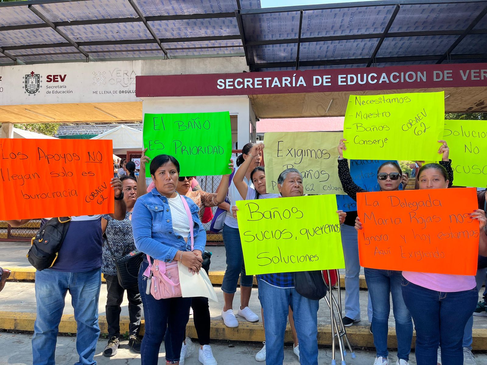 La mañana de este viernes, padres de familia del Colegio de Bachilleres 62 de la ciudad de Veracruz, se plantaron en las instalaciones de la Secretaria de Educación de Veracruz para exigir la construcción de baños para atender a 300 estudiantes.