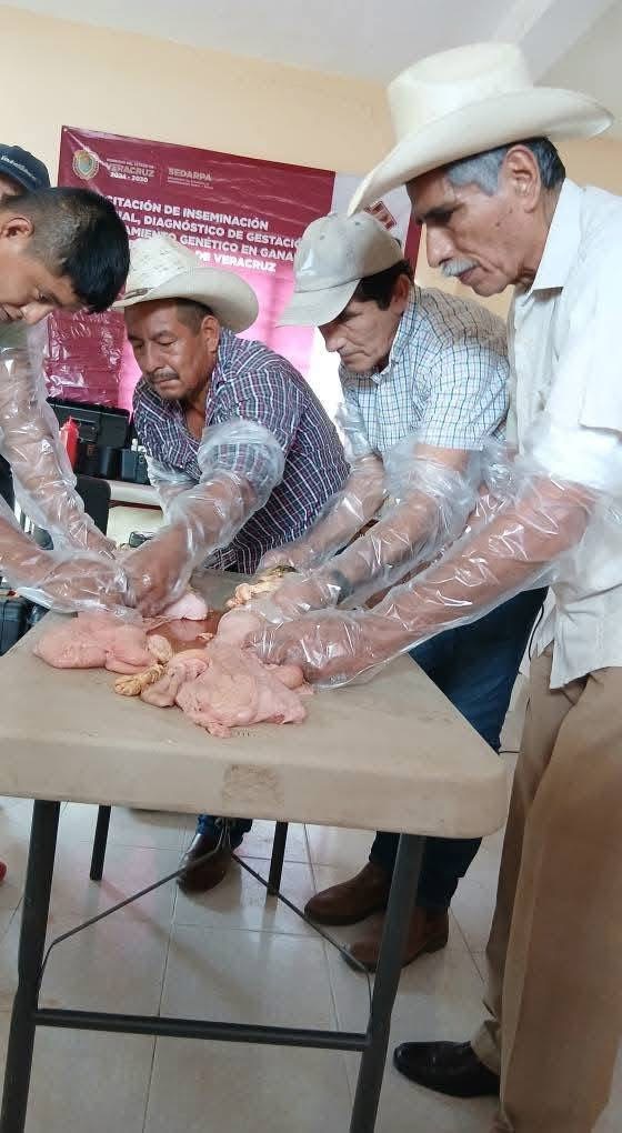 Benito Juárez, Veracruz..- Productores ganaderos de Benito Juárez y Chicontepec, Veracruz, participaron en el Curso-Taller de Inseminación Artificial y Diagnóstico de Gestación por medio de Palpación, organizado por la Dirección General de Ganadería, dependiente de la Subsecretaría de Ganadería y Pesca. Realizado en las instalaciones de la Asociación Ganadera Local de Benito Juárez, contando con la presencia de su Presidente, el Ing. Aldo de Jesús Castillo Arredondo.