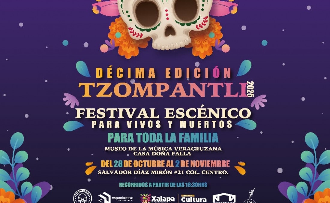 La Secretaría de Cultura de Veracruz (SECVER) invita a la celebración del décimo aniversario del Festival Escénico Tzompantli, desde hoy y hasta el domingo 02 de noviembre a partir de las 18:30 horas.