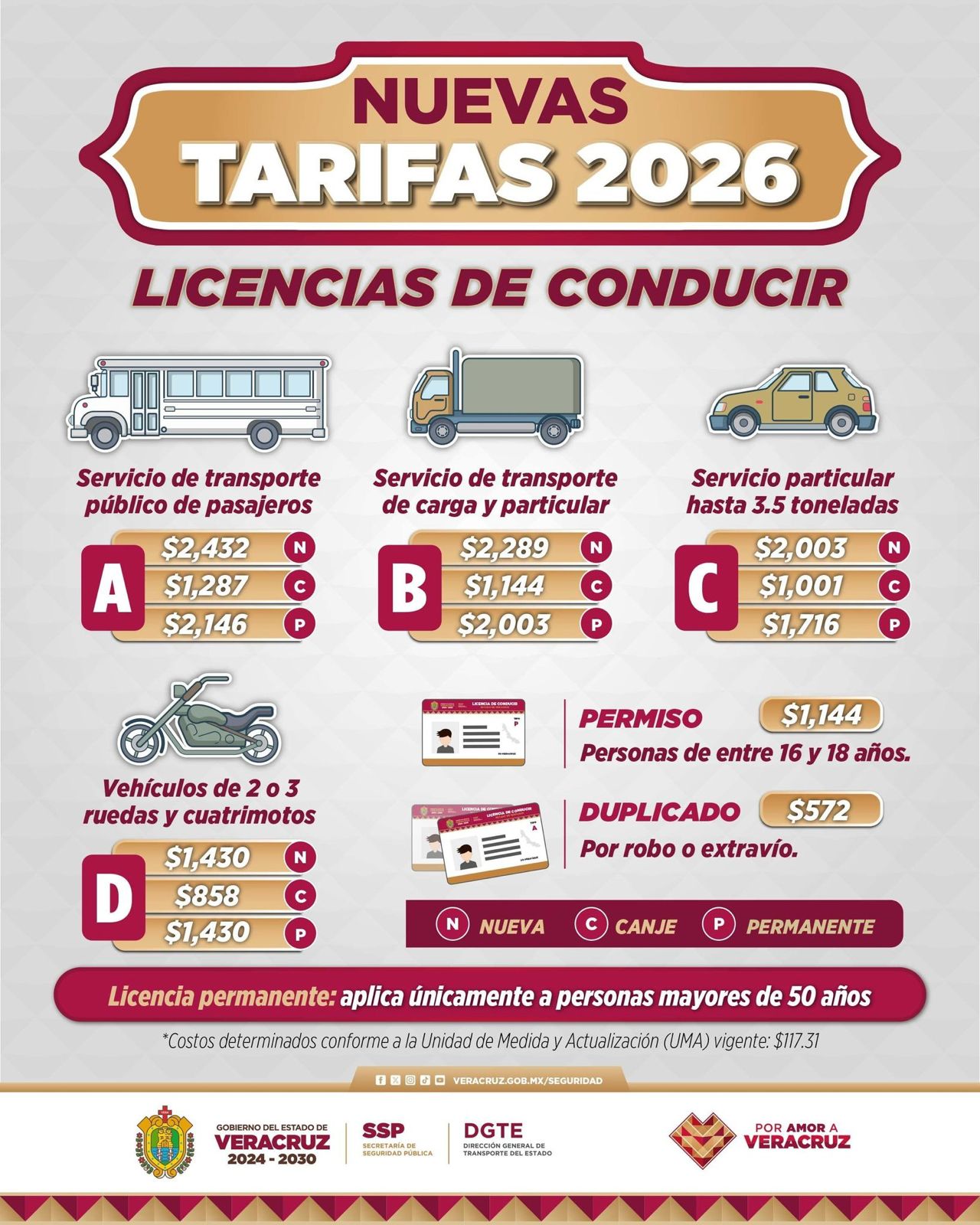 Las licencias para conducir en el estado de Veracruz actualizaron sus costos en comparación con el año anterior, derivado del aumento en la Unidad de Medida y Actualización (UMA).