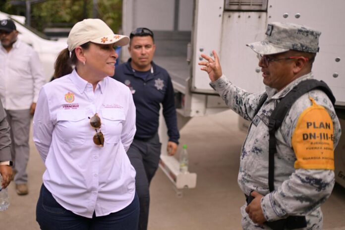 Posteriormente, la Gobernadora recorrió el Centro Regional de Actualización Magisterial, adaptado como centro de acopio desde el cual se distribuyen víveres y productos básicos a comunidades como Pantepec y Pueblo Nuevo, mediante la coordinación entre el Gobierno del Estado, el Gobierno de México y la participación solidaria de la ciudadanía.