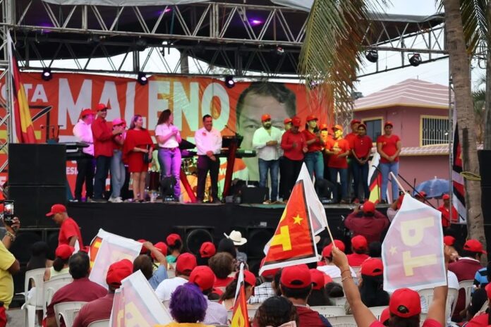 La zacatecana Geovanna Bañuelos, coordinadora del Grupo Parlamentario del PT en el Senado; estuvo presente en su pre cierre de campaña el pasado domingo en la localidad del Tejar, donde Maleno puso a bailar a todos los medellinenses, que disfrutaron la música de los Sabrositos del Ritmo y a Mario Mazza.