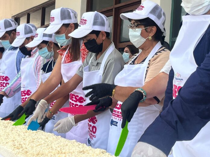 En acto celebrado en el parque Benito Juárez de la cabecera municipal, la presidenta municipal, Elvia Illescas Loyo, realizó el primer corte al producto lácteo que midió 40 centímetros de altura, con peso de más de una tonelada y en donde se ocuparon más de 10 mil litros de leche, agradeciendo a los más de 30 queseros de comunidades como: Paso Carretas, Cuyucuenda y de la misma cabecera municipal.