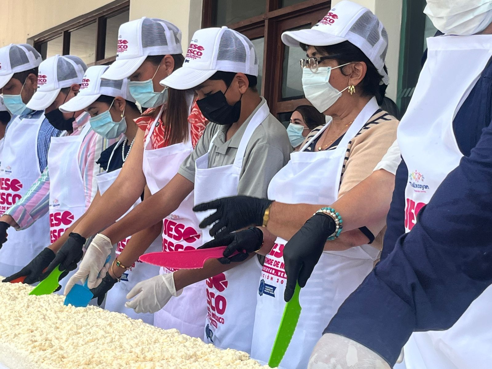Asimismo, más de 20 tortilleras palmearon de manera simultánea la masa de maíz para que las y los asistentes a esta gran celebración pudieran degustar un rico pedazo de queso fresco, taquitos, enchiladas con mole, crema y queso y ricas aguas de Jamaica.