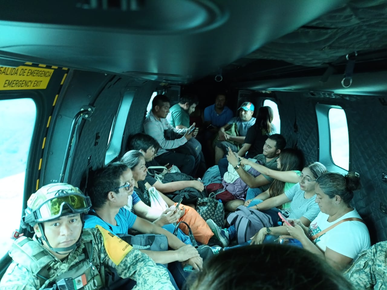 De las personas evacuadas, siete son maestras y maestros provenientes de Zontecomatlán y ocho de Ilamatlán, quienes fueron transportados mediante el puente aéreo implementado por las autoridades estatales y federales para salvaguardar a la población vulnerable.
